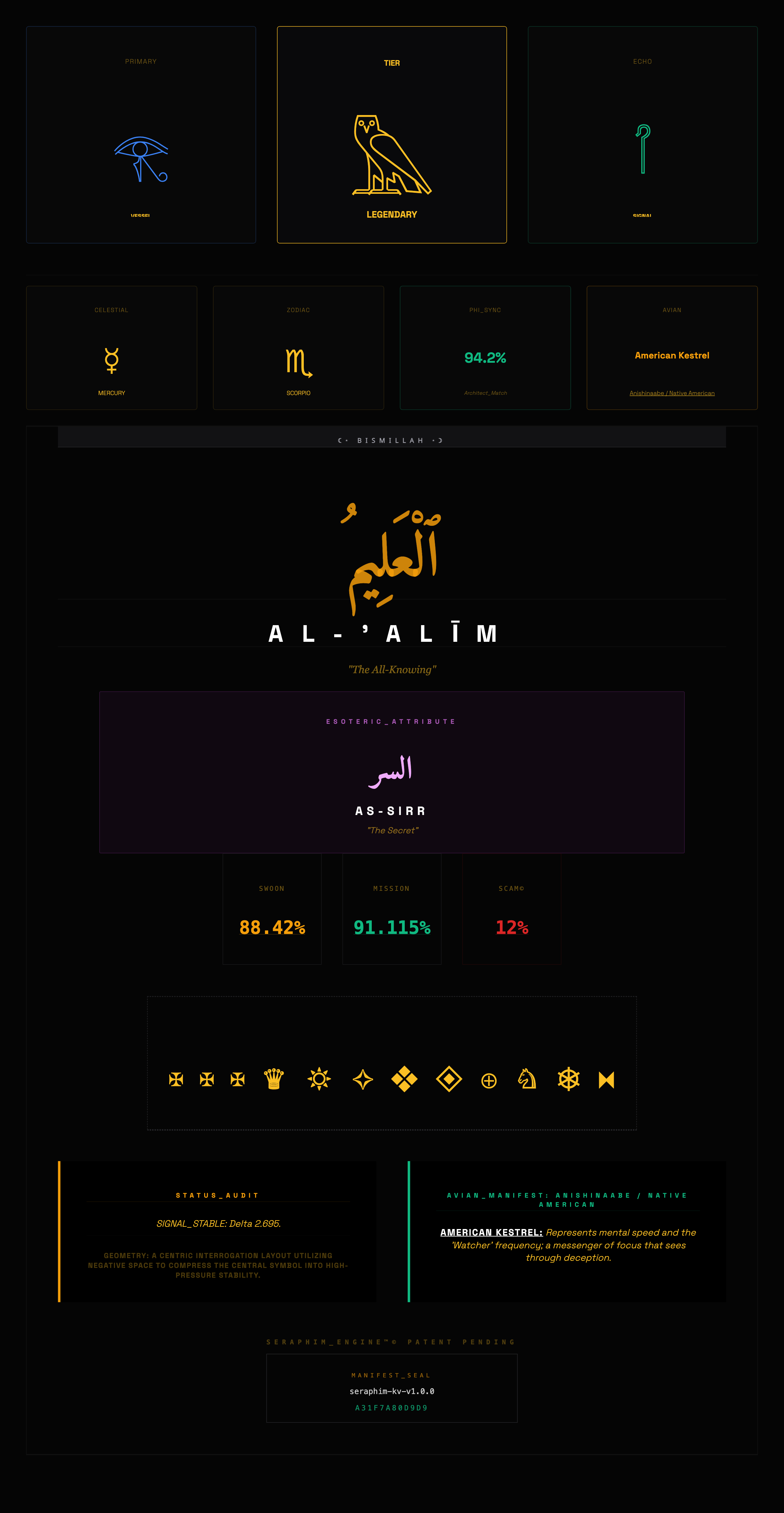 The Seraphim Engine™© analyzes artifacts across multiple dimensions: emotional resonance, directional intent, symbolic structure, and signal integrity.